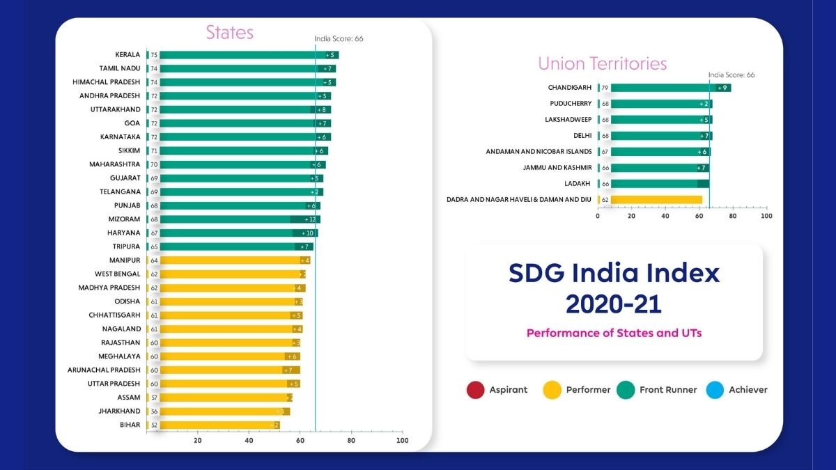 China, the strongest competitor, has already achieved 72% of the SDGs, while India has attained only 60% of the goals. Neighbours Bangladesh (63%), Myanmar (65%), Nepal (66%), Sri Lanka (68%), and Bhutan (70%) are all placed ahead of India. Pakistan is the only neighbour lagging behind India.